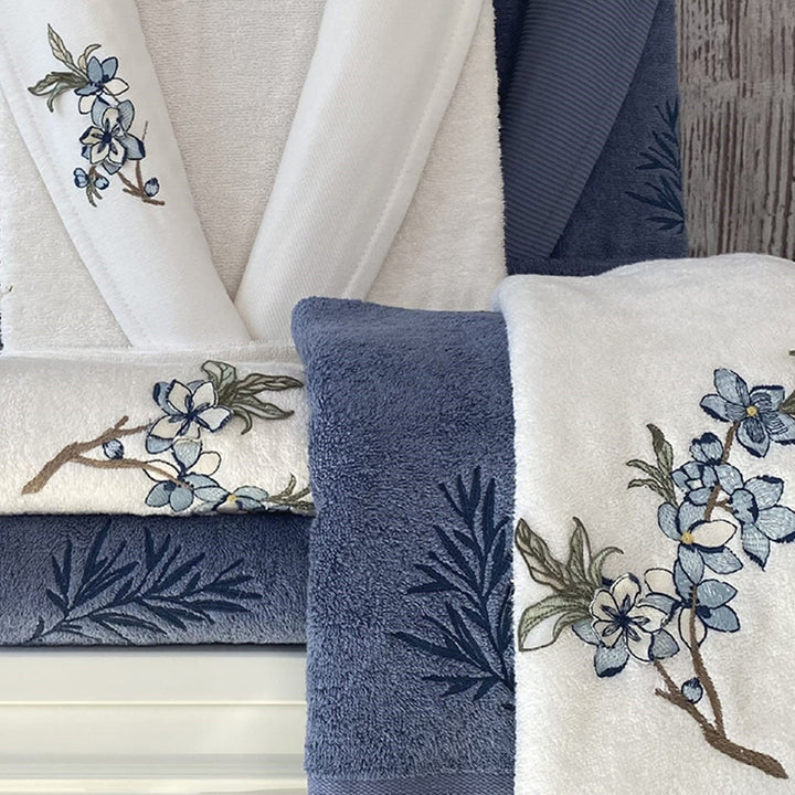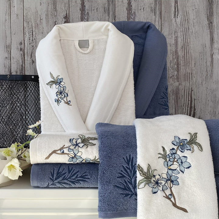 طقم رداء حمام تيرفال كريمي - نيلي 70% خيزران 30% قطن 6 قطع