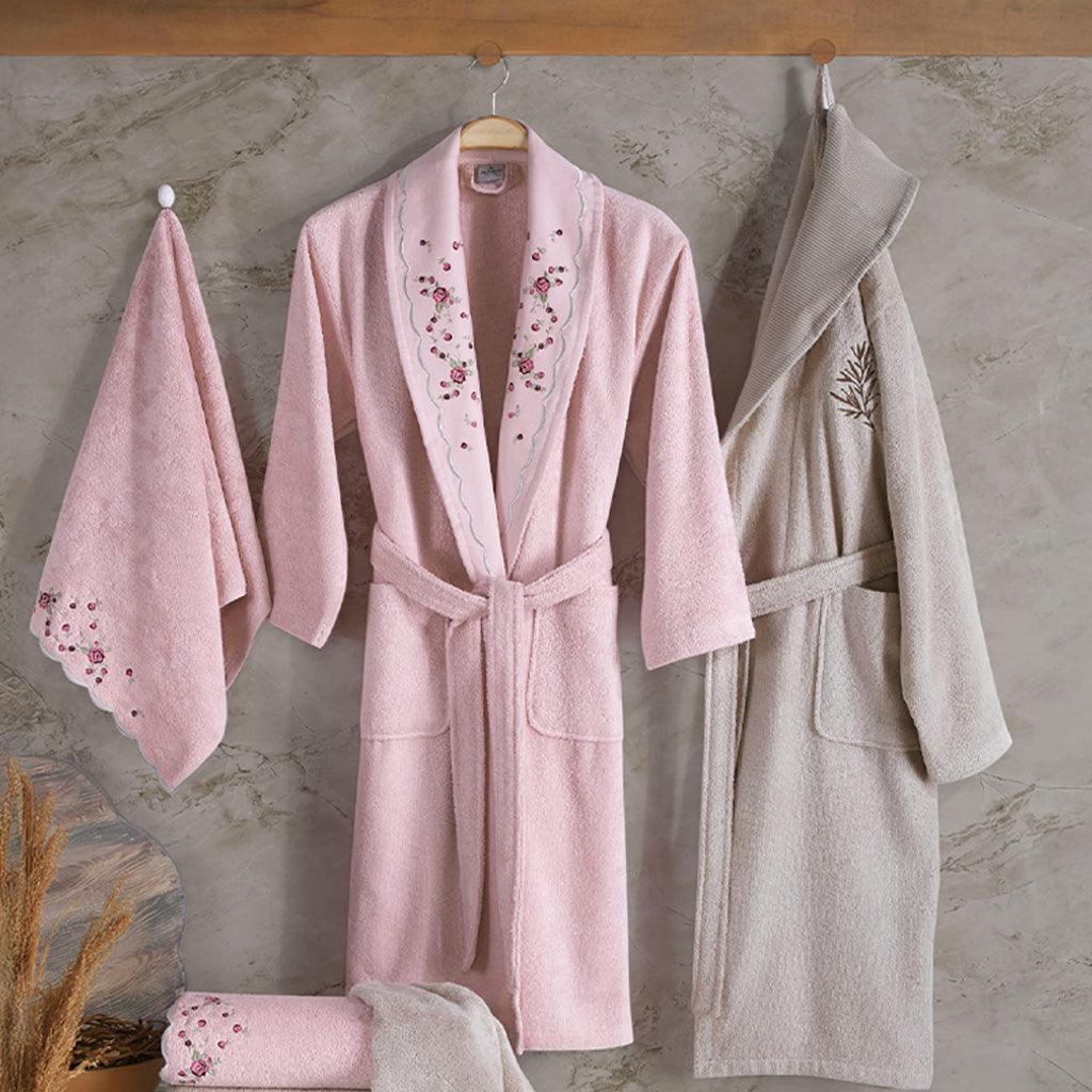 طقم رداء حمام فيلافيا وردي - وردي - كابتشينو 70% خيزران 30% قطن 6 قطع