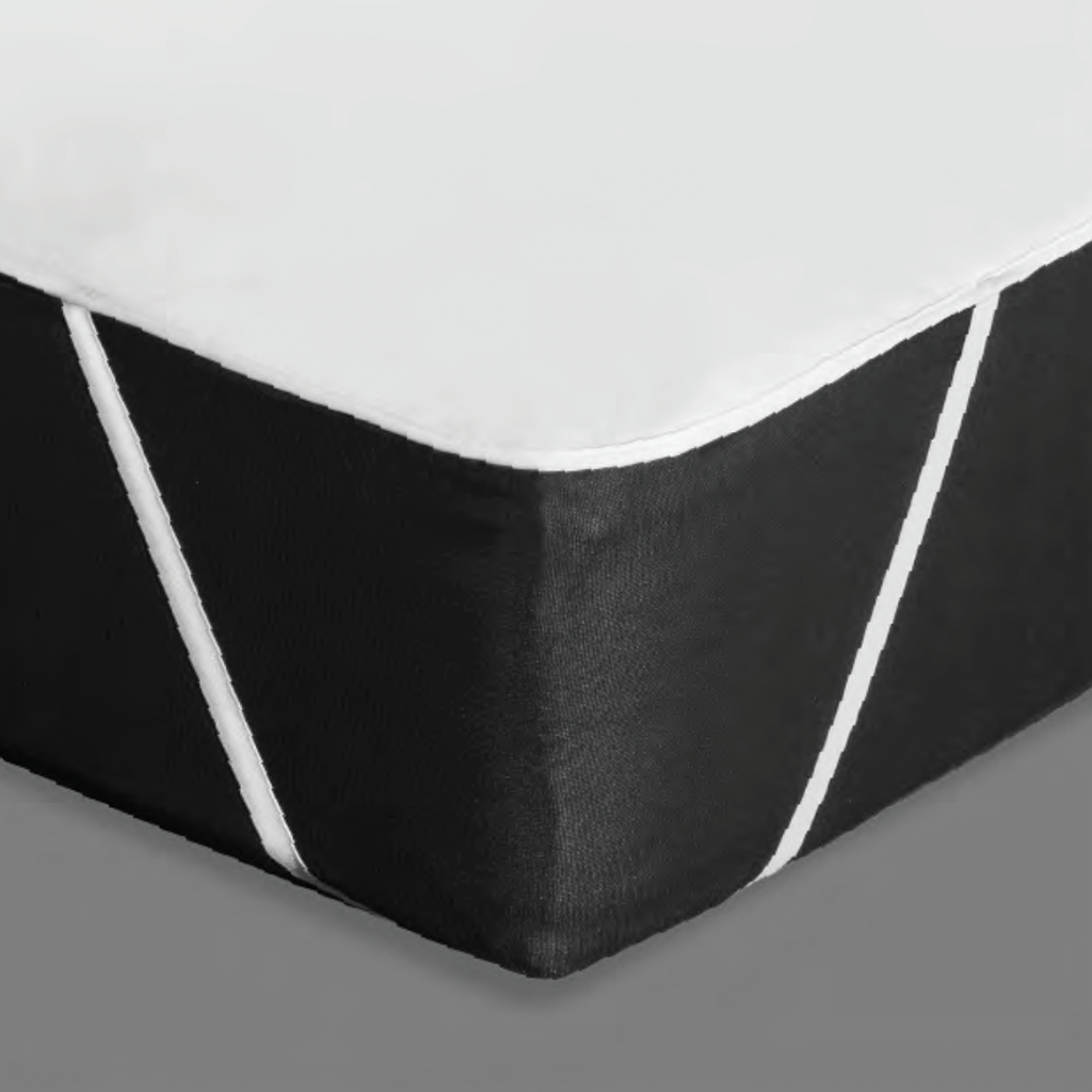 Верхние поверхности PROTECTORS из 100% хлопчатобумажной ткани. Он пришит со всех четырех сторон. Он полностью обхватывает бедро эластичным бортиком.